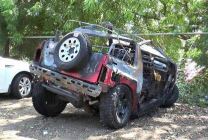 Yipeta Suzuki placa G065681 en la que fallecieron dos hombres y una mujer la madrugada del domingo. SANTIAGO.- Al menos seis personas fallecieron entre ellas dos presuntos delincuentes y otras cinco...Comerciante hiere exmujer y un hijo de ella