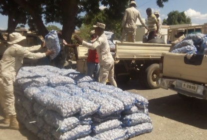 Ajo incautado por el Cesfront. Foto Carlos Bueno SANTIAGO.- Miembros del Cuerpo Especializado en Seguridad Fronteriza (Cesfront), ocuparon ayer 400 sacos de ajo traídos de contrabando desde Haití...Intentan linchar haitiano en Mao