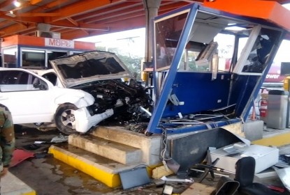 Estado en que quedó la yipeta que conducía William Romero, tras impactar violentamente una de las casetas de cobro del peaje de la avenida Circunvalación Norte, de Santiago. SANTIAGO.- Un...PN desmantela punto de drogas; apresa hombre