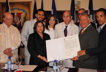 Salvador Sadhalá recibe la resolución que le entregan Daysi Díaz, presidenta del Concejo; el alcalde Gilberto Serulle y Juan Henríquez, secretario de ese organismo. SANTIAGO.- La Alcaldía...Ponen en posesión nuevo comandante policial Cibao Central
