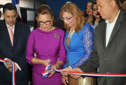 Iris Guaba corta la cinta de las nuevas oficinas, acompañada del director general de Migración, José Ricardo Taveras; Hilda Rodríguez, encargada de la dependencia aquí y Silvio Durán,...Camino lamenta olvido de hechos