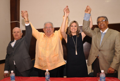 Víctor Méndez, José Enrique Sued, Iris Méndez y Héctor Grullón Moronta levantan las manos en señal de triunfo. SANTIAGO.- José Enrique Sued, candidato alcalde de esta ciudad por los...Banreservas y Nexus muestran plataforma digital de educación financiera Milkcash
