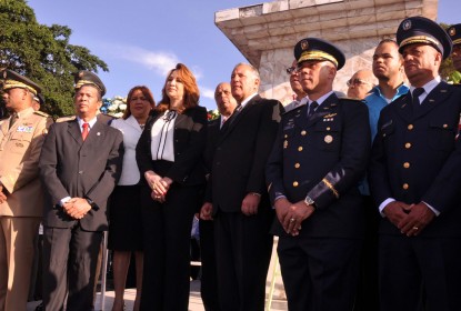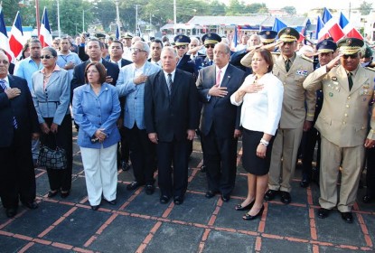 La gobernadora Aura Toribio, el presidente de la Comisión de Efemérides Patrias, Juan Daniel Balcácer y el alcalde Gilberto Serulle durante la ceremonia. SANTIAGO.- Con el izamiento de la Bandera...