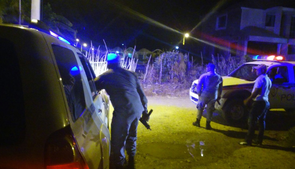 Agentes de la Policía anoche cuando intentaban apresar al comerciante Domingo Antonio Peralta Suero (El Pistolero) luego que le disparó a su exmujer y a su hijastro.