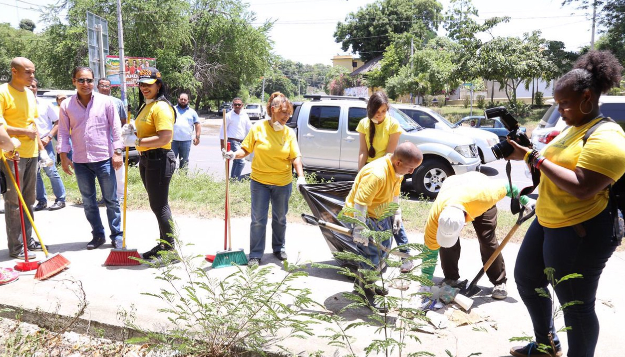 La iglesia de Dios, hoy se unió al Alcalde Martínez, otros voluntarios y brigadas de limpieza para intervenir la importante avenida de Santiago, que ya comienza a lucir limpia en una gran parte de su longitud.