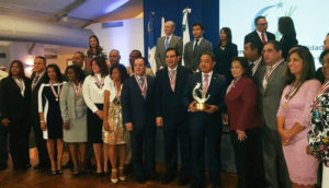 La presea dorada destinada a EDENORTE fue recibida por el ingeniero Julio César Correa, Administrador Gerente General, de manos del ministro de Administración Pública, licenciado Ramón Ventura Camejo.