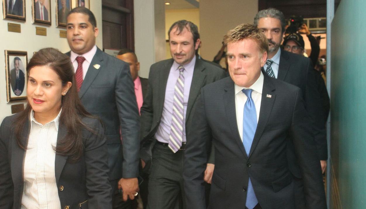 El diplomático llegó al palacio de justicia junto a una comitiva para tratar con Liranzo y colaborar en casos que el Ministerio Público trabaja en coordinación con las agencias de investigación de los Estados Unidos.