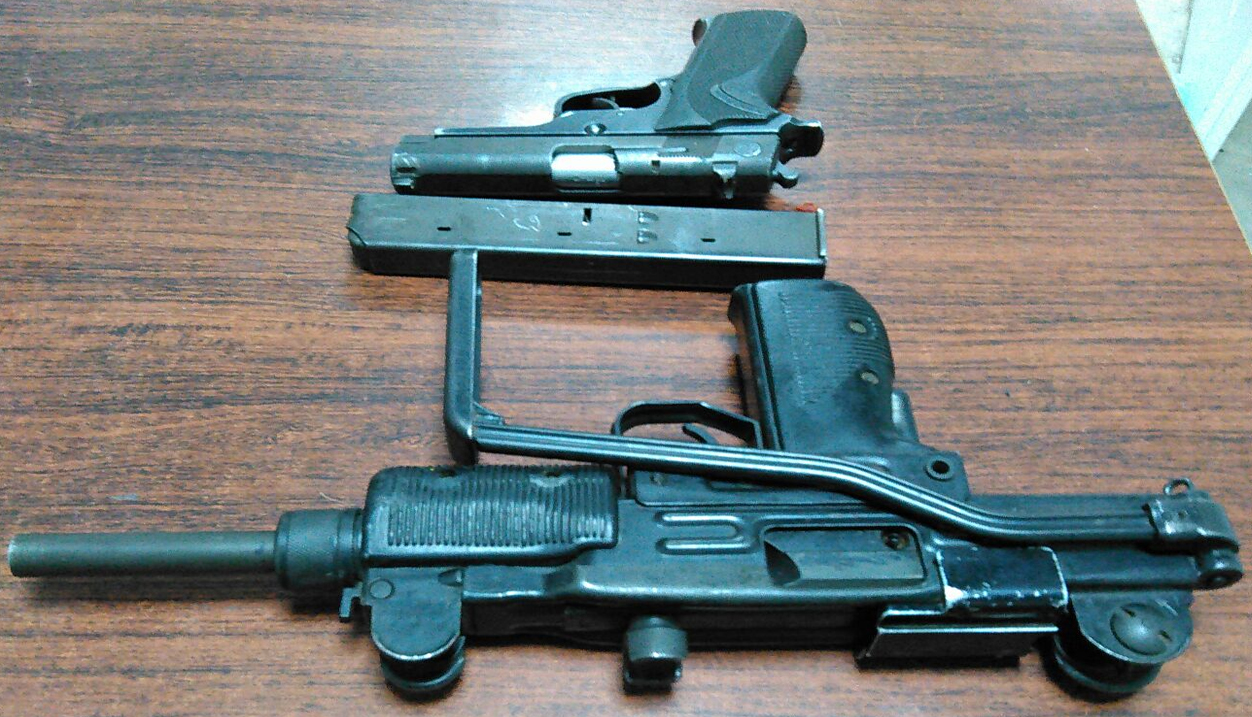 Armas de fuego decomisadas por las autoridades a los atacantes de la patrulla policial. Foto José Disla.