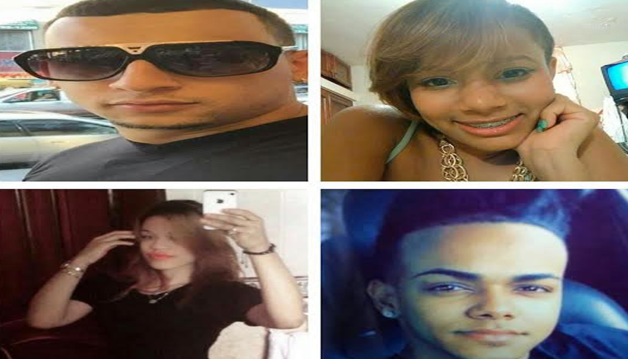 Jankelly Brito Paulino, Bervely Lora Lantigua, Arleny Remigio y Darwin José Rodríguez Fernández fallecieron calcinados la madrugada del martes al chocar la yipeta en la que se desplazaban con un muro del elevado de la avenida Monumental.