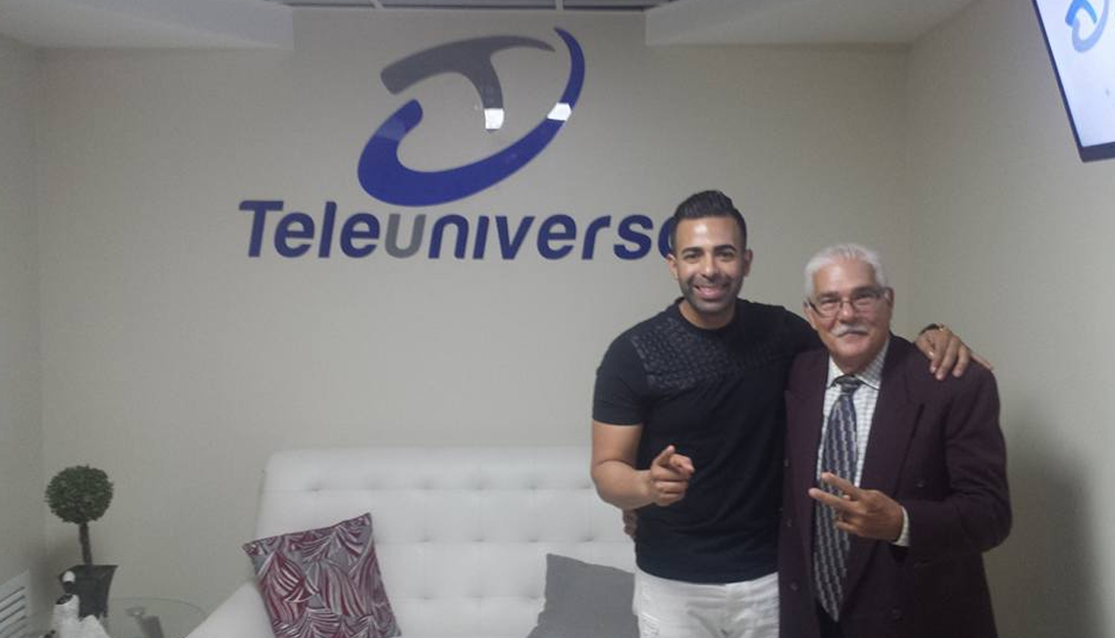 El bachatero puertorriqueño Jay Ruiz, en un aparte con el productor del programa de televisión y director de este medio, Claudio Concepción.