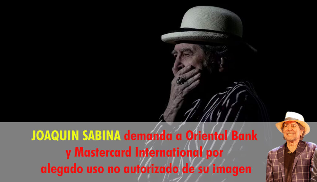 El cantautor español Joaquín Sabina ha radicado una demanda contra Oriental Bank y Mastercard International Incorporated, solicitando una moción sobre interdicto temporero por una alegada violación a derecho de propia imagen, pidiendo el cese inmediato de la difusión de la campaña publicitaria “Experiencia Joaquín Sabina” en redes sociales y vallas publicitarias, entre otros medios publicitarios, en Puerto Rico, para la que el uso de la imagen del artista no fue autorizada.