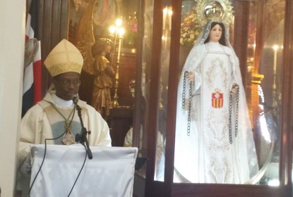 El nuncio apostólico Jude Thaddeus Okolo pronuncia la homilía en la misa oficial, con motivo de la celebración del Día de Nuestra Señora de las Mercedes. SANTO CERRO (La Vega).- El nuncio...Hijo de Fidel no cree en mesianismo político