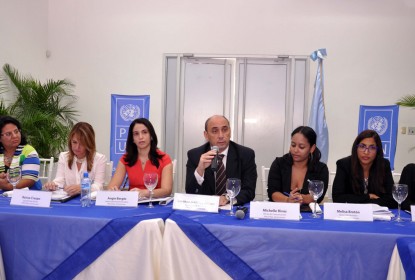 Lorenzo Jiménez de Luis, representante del PNUD en la República Dominicana, mientras conversaba ayer con periodistas de Santiago, le acompañan Angie Bergés, María Eugenia Morales, Raissa Crespo,...Niño de 4 años se ahoga en tanque de agua