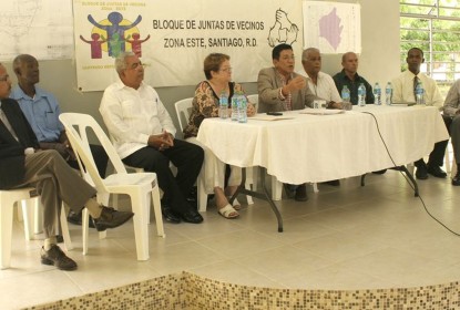 El presidente del Bloque de Juntas de Vecinos de la Zona Este, de Santiago, ingeniero Pedro De la Cruz, junto a otros directivos, durante rueda de prensa se dirige a los representantes de los medios...Denuncian muerte de dominicano en Puerto Rico presuntamente por disparo de policía