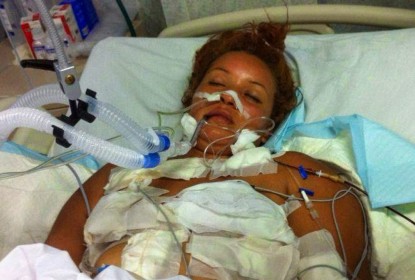 Ramona María Gervasio en su lecho del hospital para asegurados Presidente Estrella Ureña, de Santiago. SANTIAGO.- Continúa siendo delicado el estado de salud de una mujer que la noche del pasado...