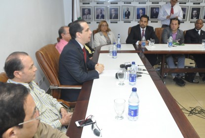 Sandy Filpo habla en la rueda de prensa, acompañado de otros dirigentes empresariales, actividad realizada para denunciar el asedio de la empresa Triple A. SANTIAGO.- La Asociación de Comerciantes...Venevisión Productions celebra tradicional ‘claquetazo’ de la telenovela “Voltea pa’ que te enamores”