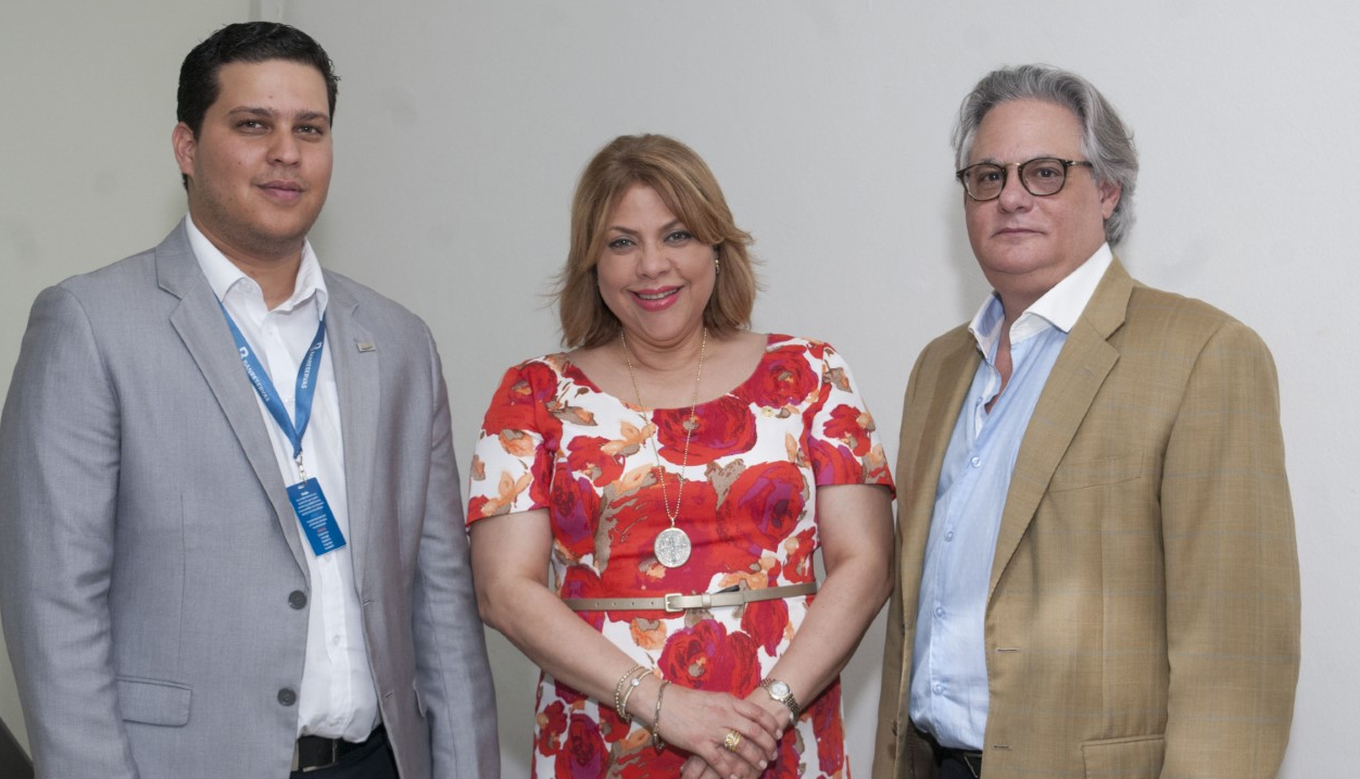 Michael Jacobo Reyes, gerente del programa CREE Banreservas; Juliannie Guerrero, directora de Sustentabilidad y Responsabilidad Social; y Rafael Faxas, asesor CREE.