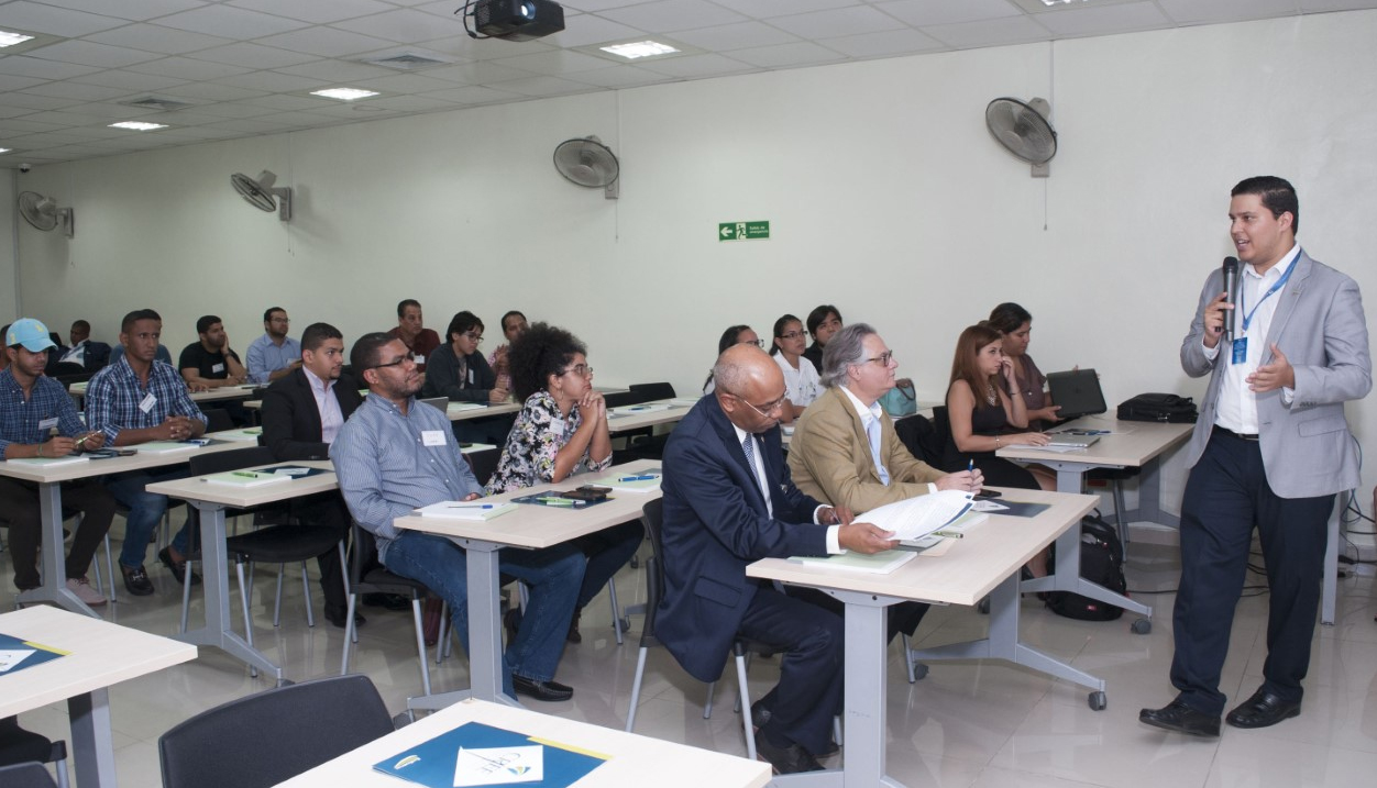 Michael Jacobo Reyes, gerente del programa CREE Banreservas, explica los detalles de Pre-Aceleración a los participantes.