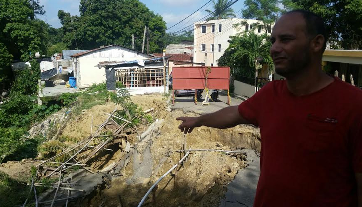 Joel Núñez, hablando en representación de las familias afectadas, se quejó de que hasta ahora esa institución oficial apenas se ha limitado a colocar letreros, advirtiendo sobre el peligro generado por el colapso de dicha calle, pero que su rehabilitación no ha comenzado.