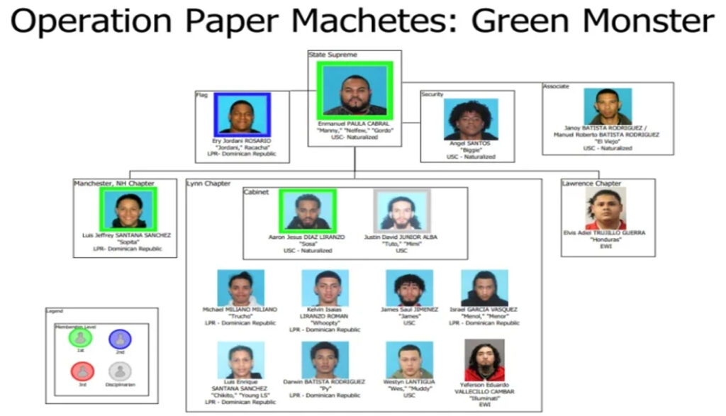 Paula-Cabral también es presuntamente responsable del Capítulo de los Trinitarios que opera en Manchester, New Hampshire, así como de los Trinitarios ubicados en Maine, donde la banda opera un lucrativo tráfico de drogas.